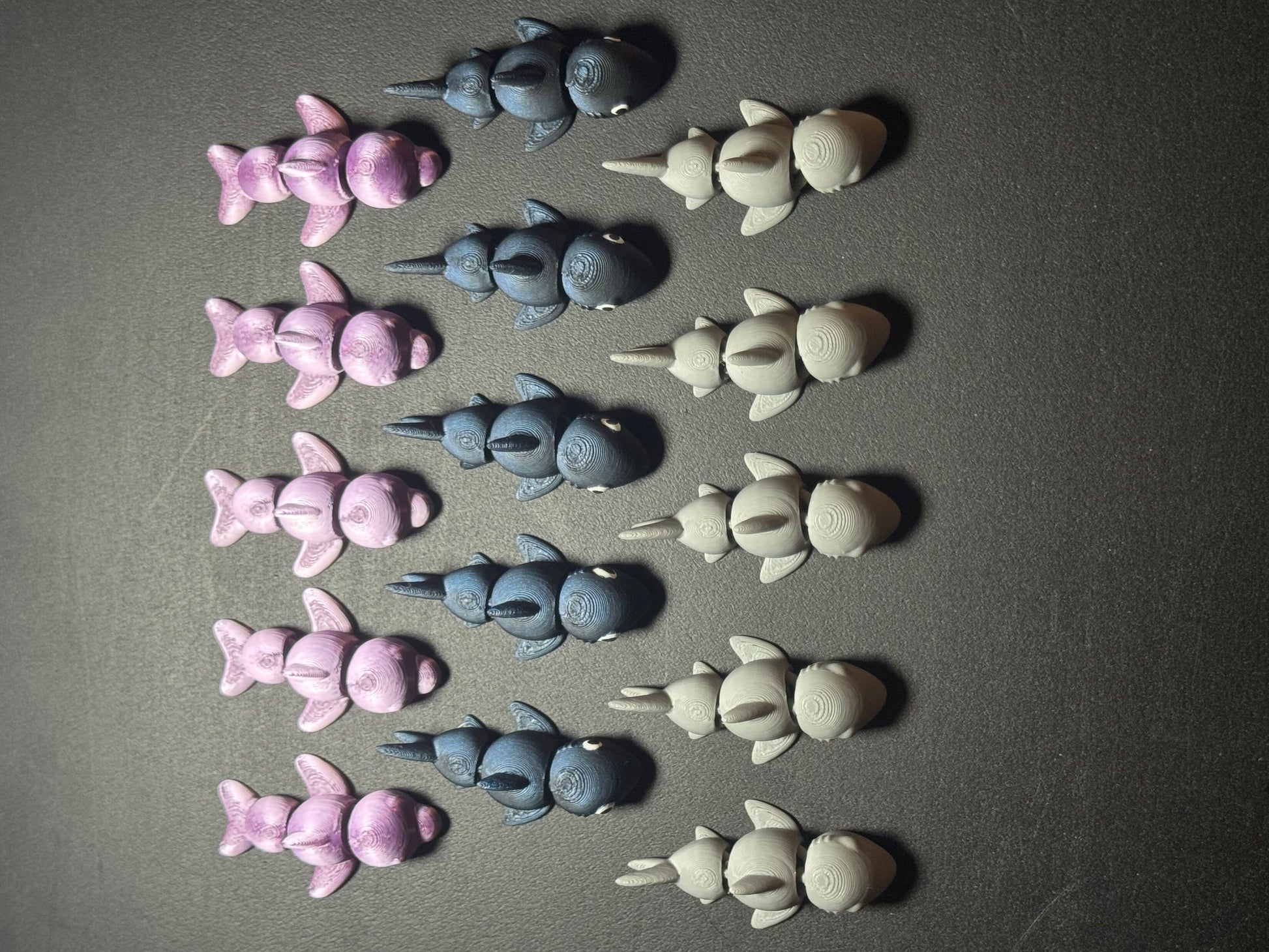 Make a splash with these adorable 3D mini articulated dolphins! These playful little swimmers are perfect for little hands – lightweight, wiggly, and full of personality. With smooth, flexible joints, each dolphin moves and bends with ease, making them a fun sensory toy, desk buddy, or ocean-themed gift.